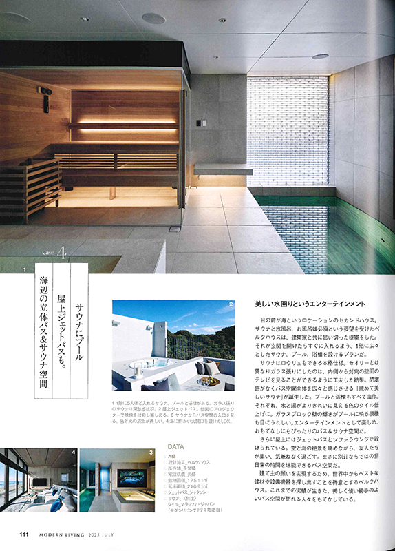 P099AQグループ タイアップ記事 / 神楽坂の邸宅Barco『Barco Uovo』AGATHERING PLACE for Bath & Saunaラグジュアリーな’おもてなし’のための コミュニケーションバス&サウナP111 CASE | 4サウナにプール、屋上ジェットバスも。海辺の立体バス&サウナ空間Formale 『Reef』